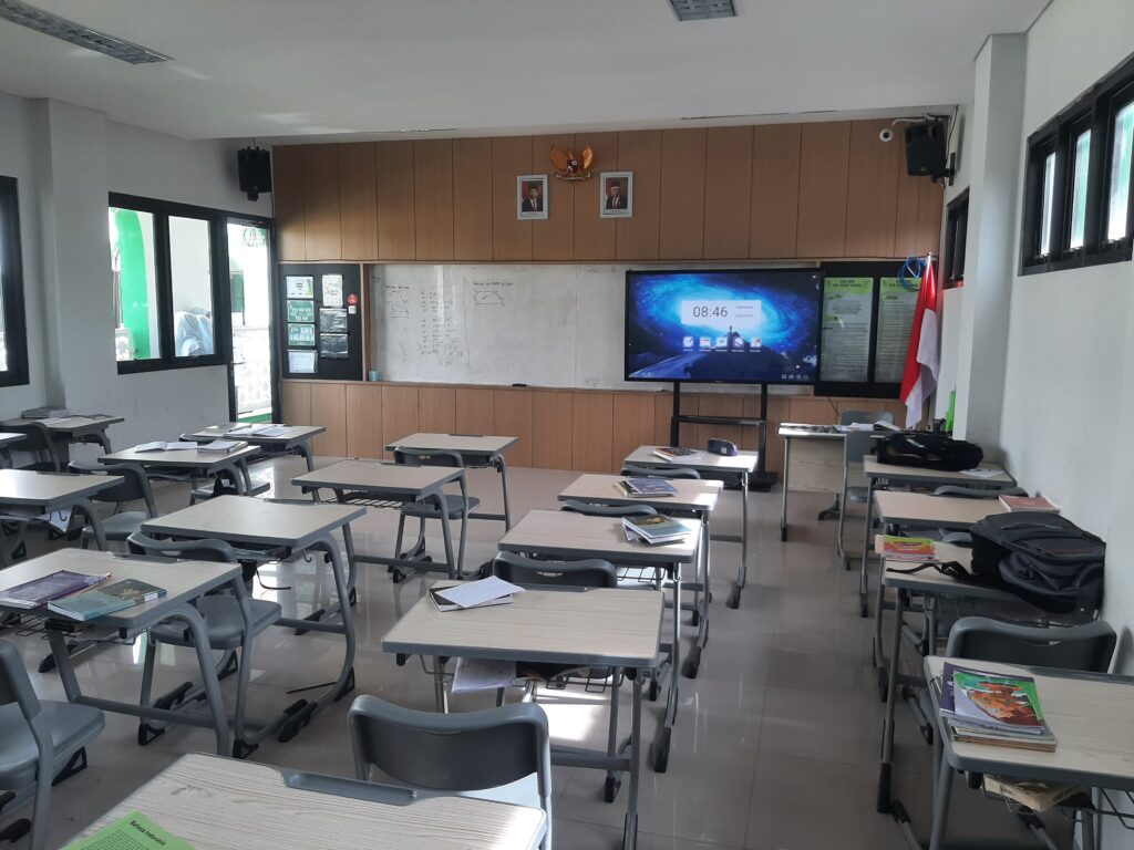 Ruang kelas yang nyaman, bersih, berAC, meja dan kursi yang modern dan ramah anak juga dilengkapi dengan IT Board/ papan digital disetiap ruang kelas sehingga proses berlajar mengajar lebih maksimal