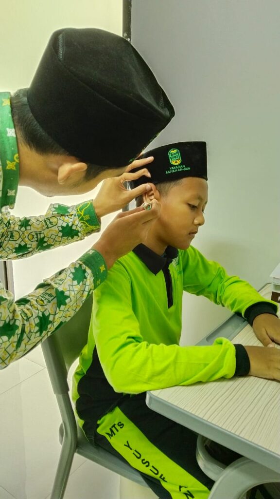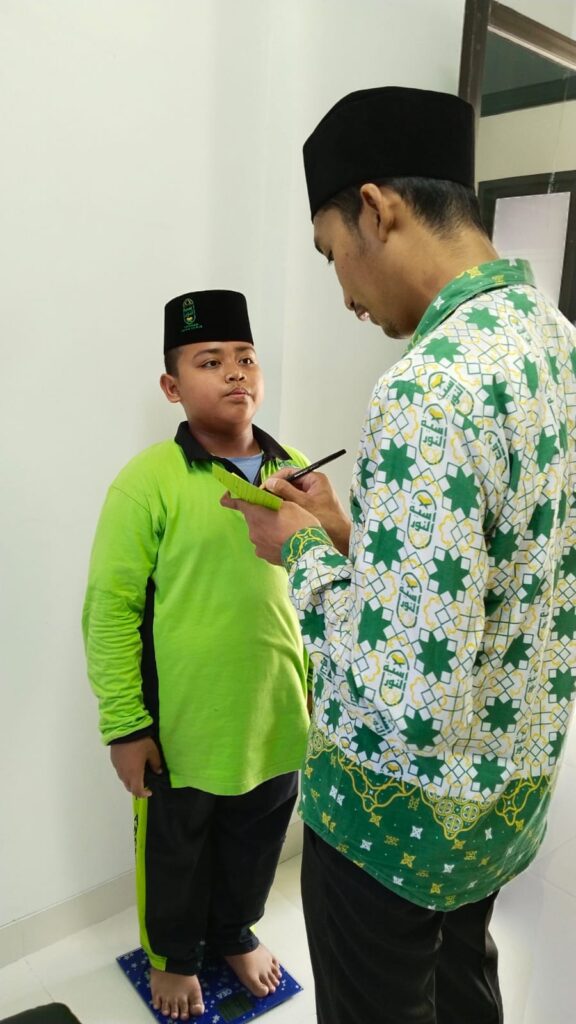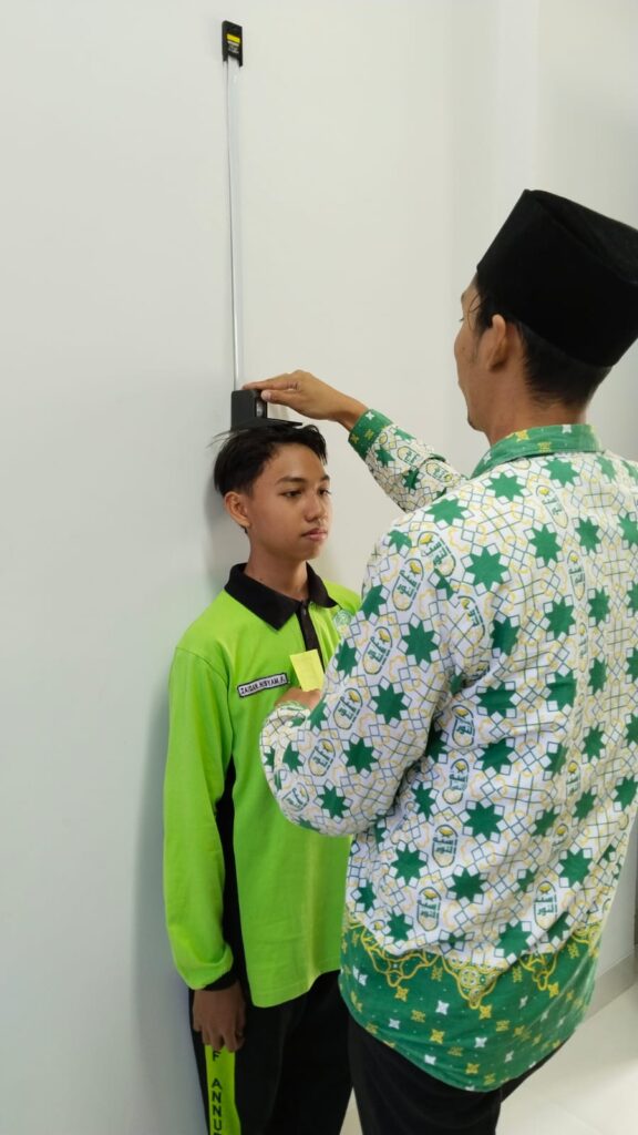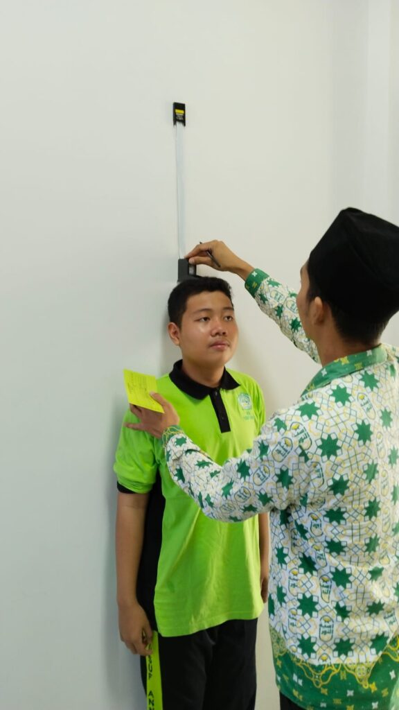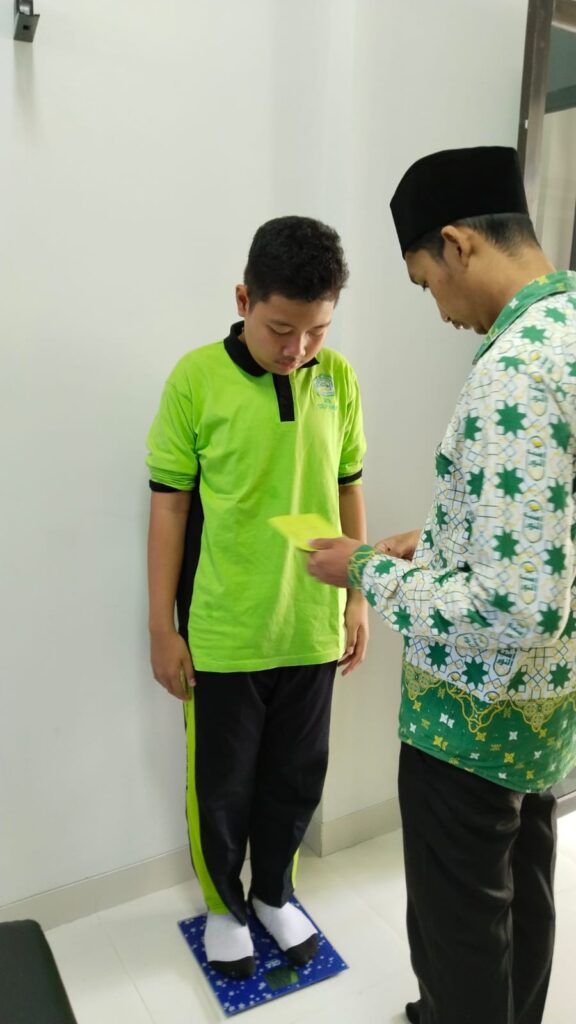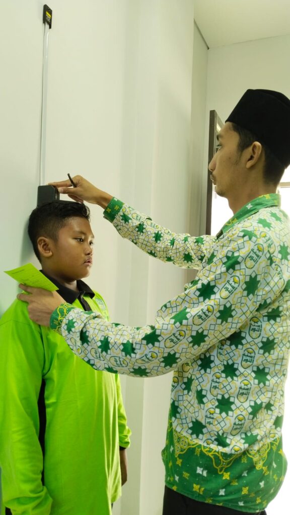 Screening kesehatan ini meliputi pemeriksaan kuku, telinga, tinggi badan, berat badan dan tensi darah.